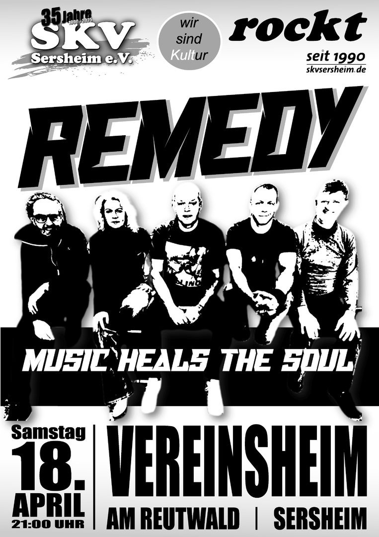 Die fünf erfahrenen Musiker kommen aus ganz Deutschland und haben sich im Schwabenland gefunden, das Herz schlägt im Proberaum in Kornwestheim. Micha an den Drums und Rudi am Bass sorgen für treibenden Tiefgang, die prägnanten Vocals kommen von Ala und Ausnahmegitarrist Dani bringt den Sound zum Schweben. Knut an den Keyboards ist für den perfekten Feinschliff verantwortlich. REMEDY steht für coolen Sound für Leib und Seele!